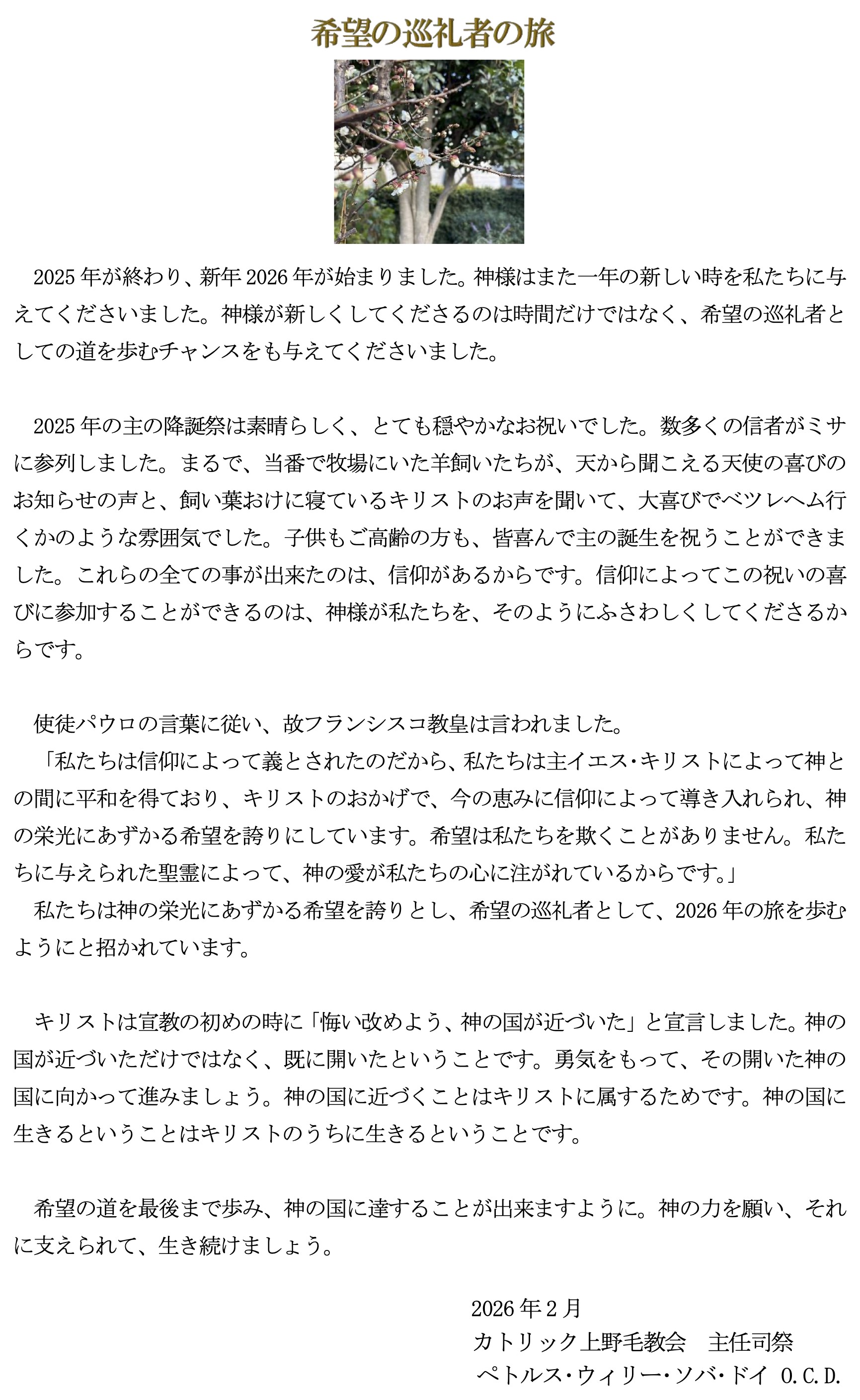 | ・2026年2月 | 希望の巡礼者の旅 |